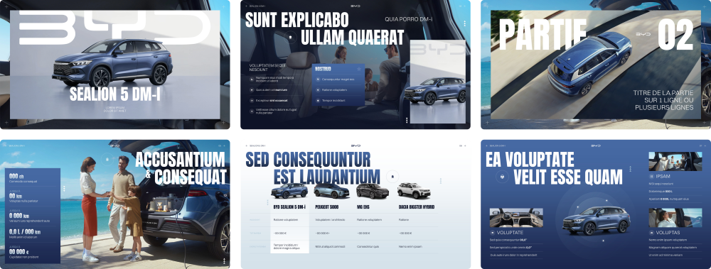 Pour un constructeur automobile, l’enjeu était de présenter un nouveau modèle hybride lors d’une réunion stratégique réunissant les équipes produit, marketing et direction. La présentation devait expliquer à la fois le positionnement du véhicule sur le marché, ses innovations technologiques et sa feuille de route commerciale.