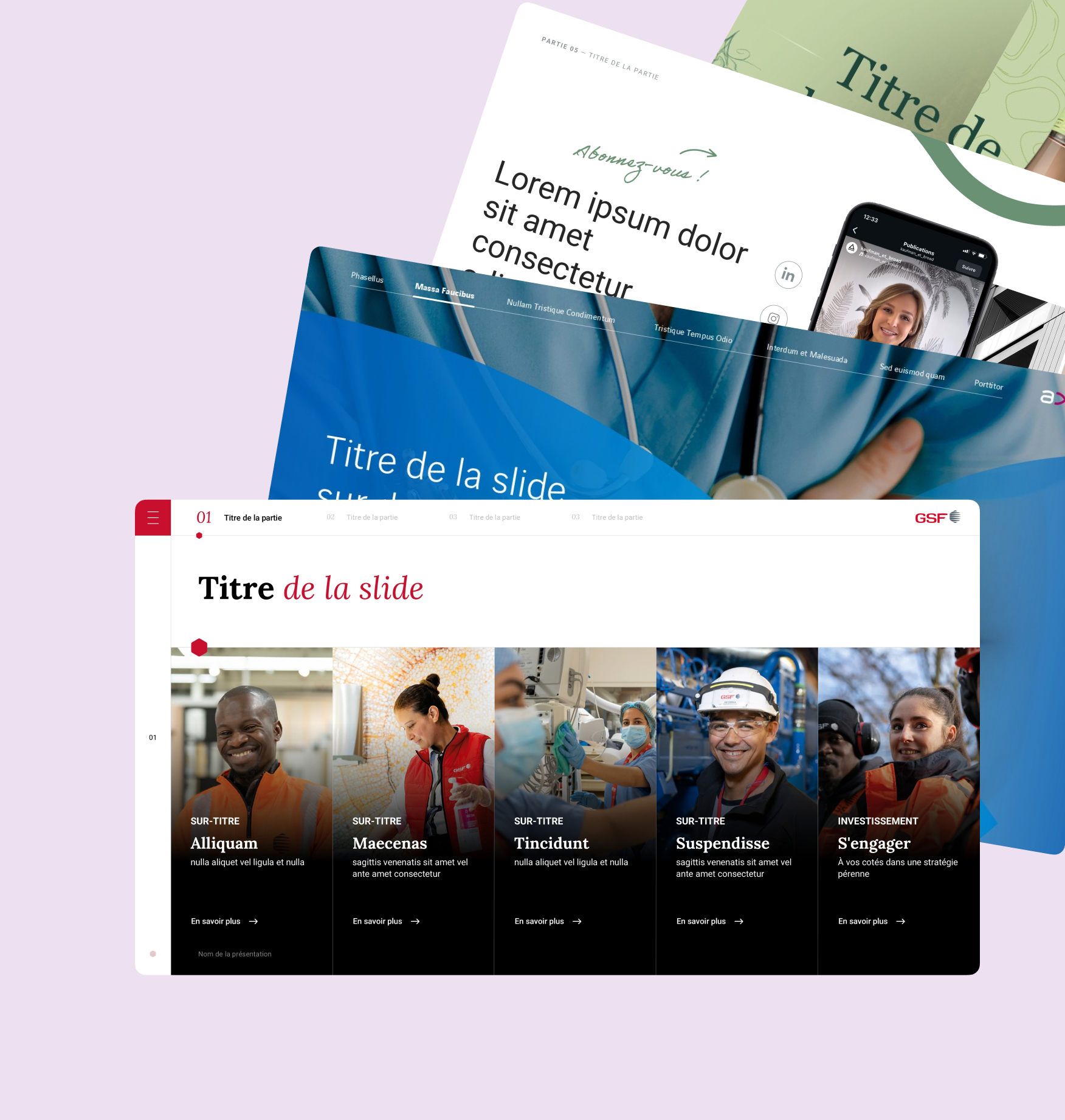 Design graphique, animations et interactions sont ensuite développés de manière cohérente avec votre identité visuelle. Les transitions sont fluides, les interactions intuitives, et l’ensemble reste parfaitement exploitable dans PowerPoint, sans dépendance à des outils externes.