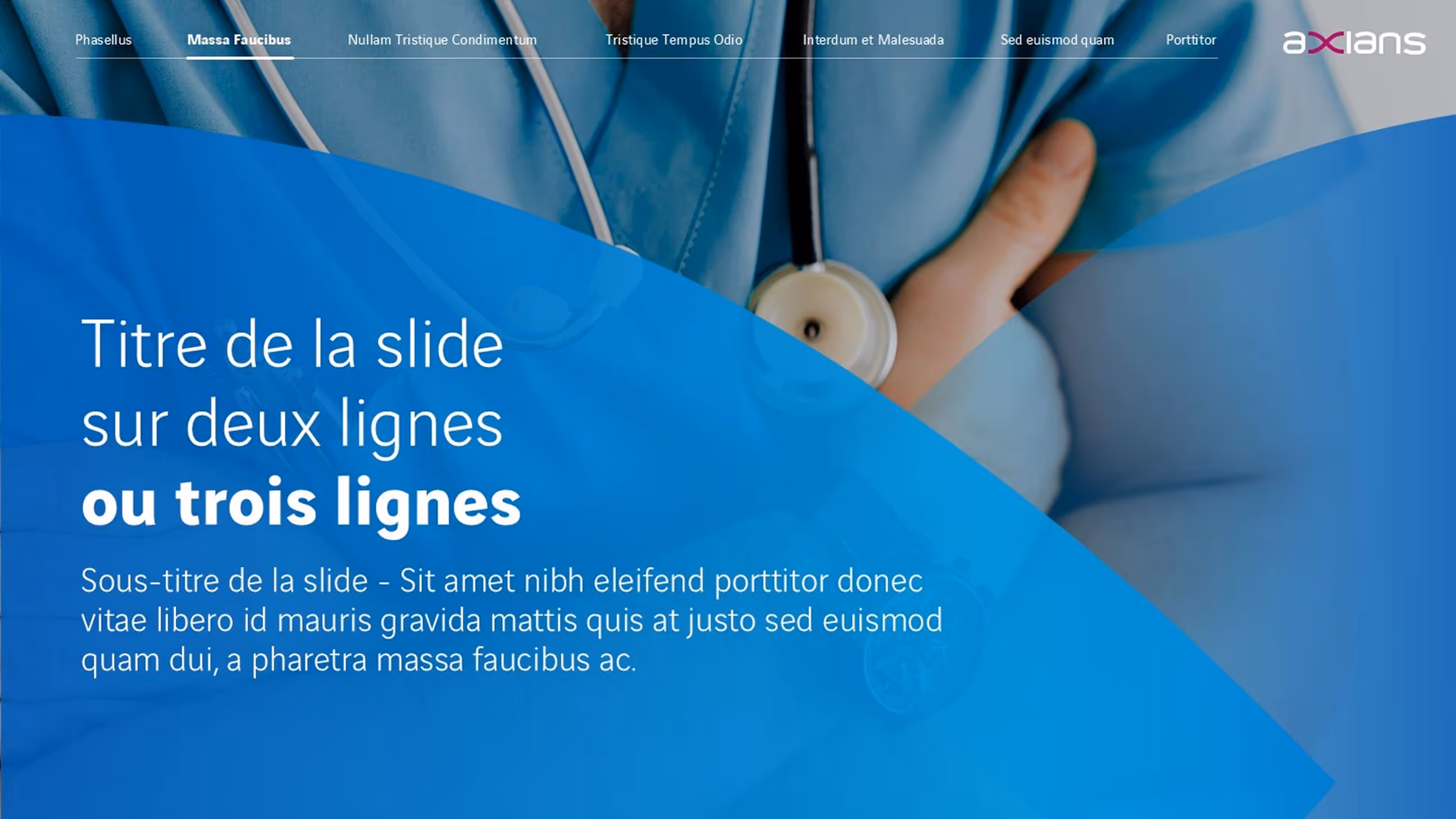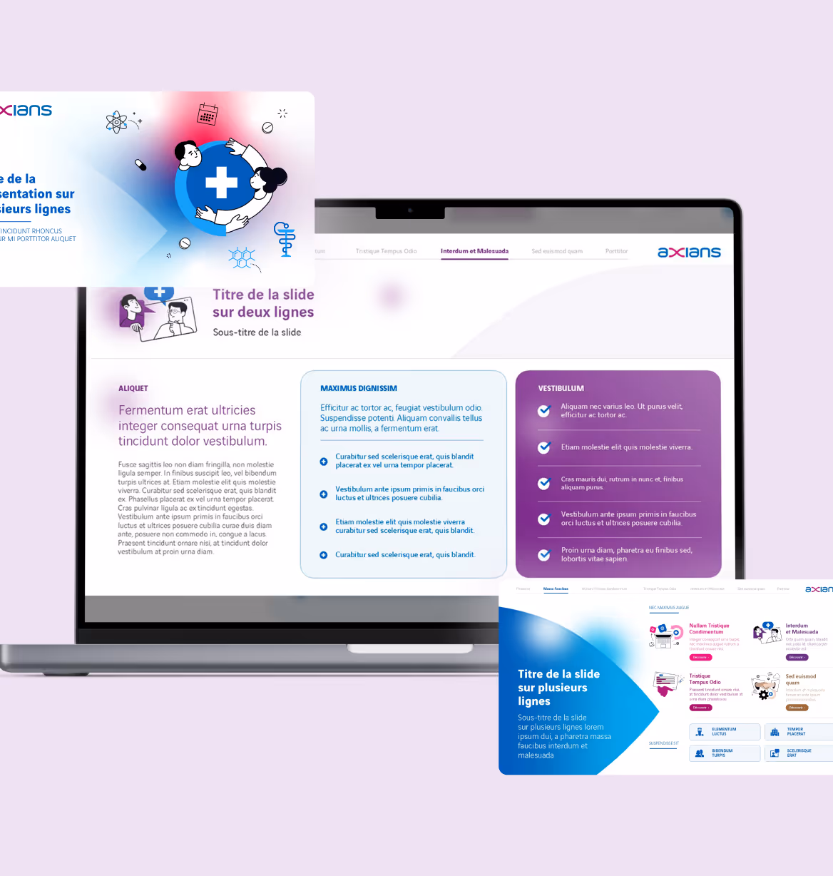 Axians souhaitait une présentation commerciale efficace et modulaire en fonction de leurs rendez-vous commerciaux. Présenter Axians et ses offres dans le secteur de la santé, tout en mettant en avant des cases study adaptés au prospect / client.