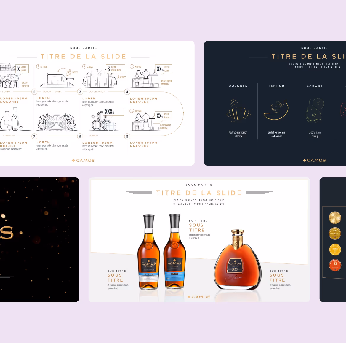 Nos équipes ont su proposer un univers visuel fort qui reflète l’univers graphique de la Maison tout en apportant une touche de modernité. Nous avons également crée des illustrations sur-mesure pour enrichir la présentation et livrer un support personnalisé et authentique, tout en insuflant du dynamisme à travers des animations subtiles et dynamiques.