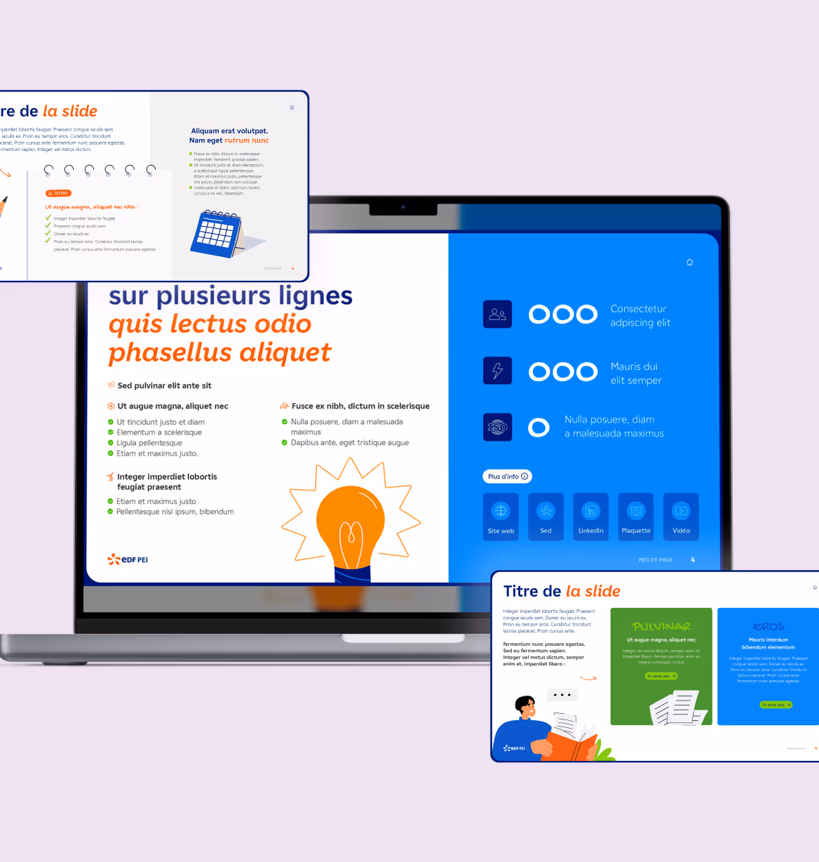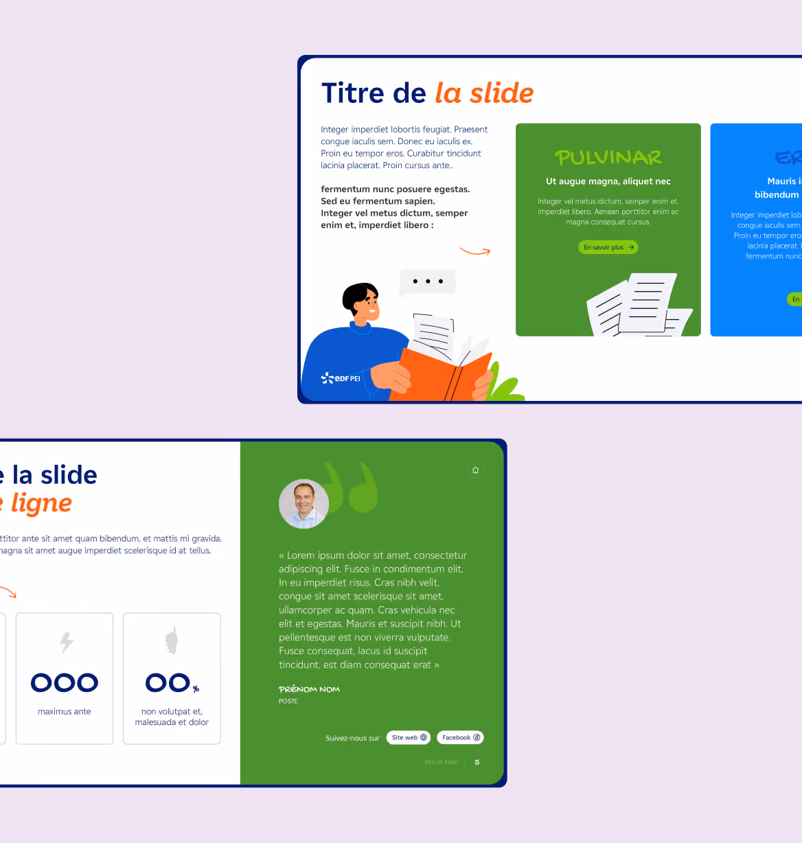 Quand EDF PEI nous a contacté pour la création d’un livret d’accueil RH, nous y avons vu la possibilité d’engager les collaborateurs dès le J1. Des slides conçues pour accompagner les salariés dans leurs premiers jours.